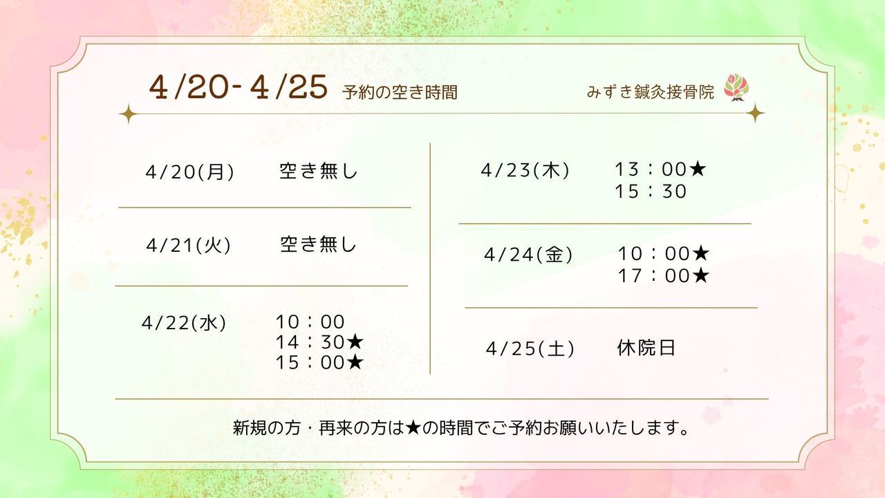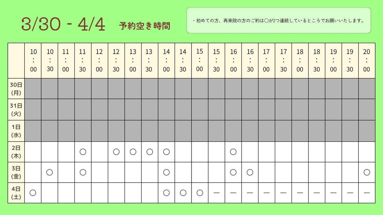 | 10:00~20:00 | 〇 | 〇 | 〇 | 〇 | 〇 | △ | 休 |